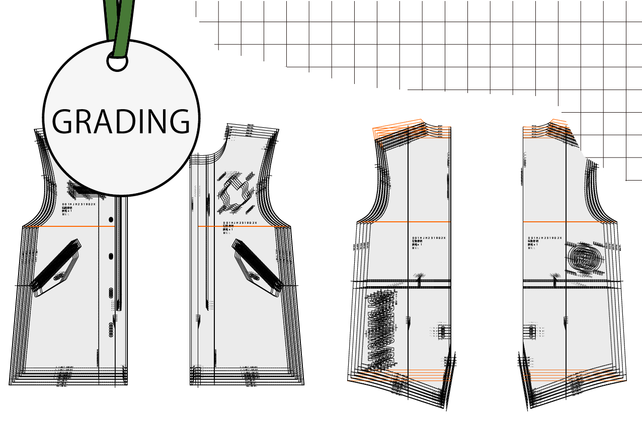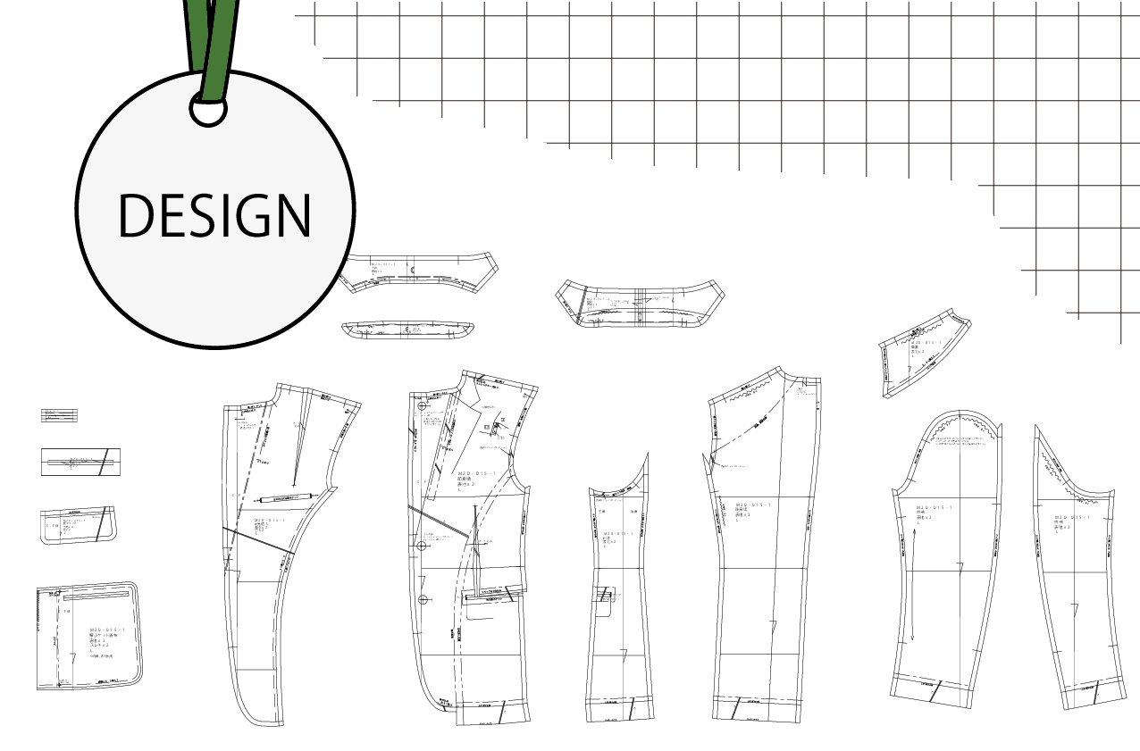 JACKRISEでは、少人数体制による一貫した対応で、細部まで配慮した精度の高いパターン設計を提供しています。サンプル用から量産用まで、パターン設計とグレーディングに対応しています。